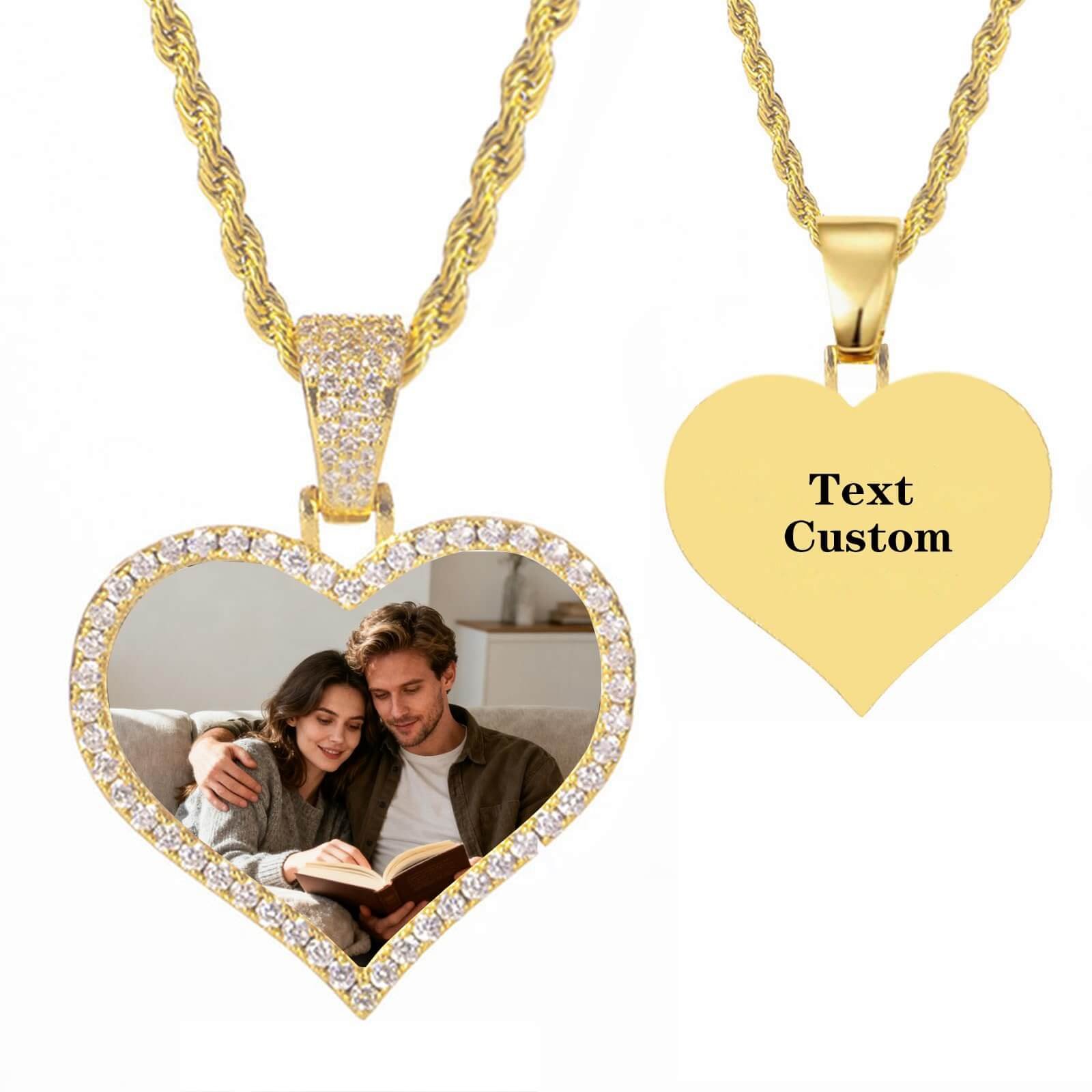 Premium Custom Heart Photo Necklace | Iced Out Memory Pendant